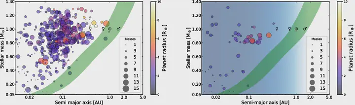 Fig. 2: Illustration of the PLATO objectivesPLATO (PLAnetary Transits and Oscillations of stars) is ESA’s M3 mission designed to detect and characterise extrasolar planets and perform asteroseismic monitoring of a large number of stars. PLATO will detect small planets (down to <2REarth) around bright stars (<11 mag), including terrestrial planets in the habitable zone of solar-like stars. With the complement of radial velocity observations from the ground, planets will be characterised for their radius, mass, and age with high accuracy (5%, 10%, 10% for an Earth-Sun combination respectively). PLATO will provide us with a large-scale catalogue of well-characterised small planets up to intermediate orbital periods, relevant for a meaningful comparison to planet formation theories and to better understand planet evolution. It will make possible comparative exoplanetology to place our Solar System planets in a broader context. In parallel, PLATO will study (host) stars using asteroseismology, allowing us to determine the stellar properties with high accuracy, substantially enhancing our knowledge of stellar structure and evolution. The payload instrument consists of 26 cameras with 12cm aperture each. For at least four years, the mission will perform high-precision photometric measurements. Here we review the science objectives, present PLATO’s target samples and fields, provide an overview of expected core science performance as well as a description of the instrument and the mission profile towards the end of the serial production of the flight cameras. PLATO is scheduled for a launch date end 2026. This overview therefore provides a summary of the mission to the community in preparation of the upcoming operational phases.
